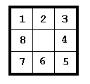 Esta seção refere-se a um conhecido e popular quebra-cabeça de peças deslizantes que já existe há pelo menos quarenta anos. As versões anteriores mais frequentes desse quebra-cabeça têm números ou letras nas peças deslizantes, e o jogador deve deslizar as peças para novas posições para realinhar um quebra-cabeça embaralhado de volta ao alinhamento do objetivo. Para ilustração, usamos a versão 3 x 3 de 8 blocos, que é representada aqui na configuração do objetivo